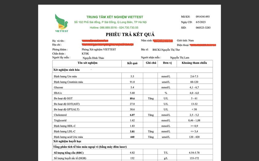 Xét nghiệm Acid uric trong máu đánh giá nguy cơ bệnh Gut.